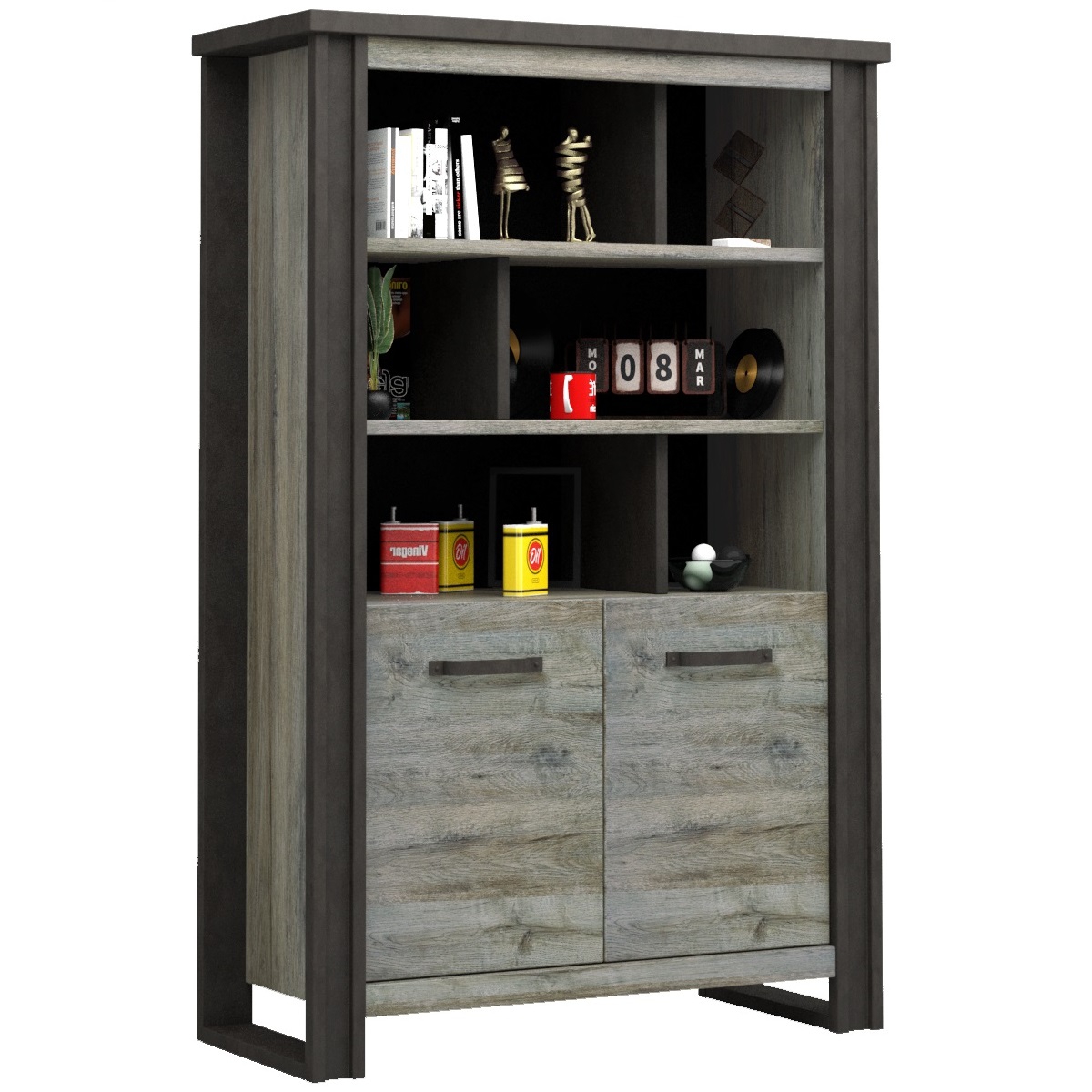 Deze grote boekenkast is 180 cm hoog en heeft 2 deuren en 6 open vakken voor uw boeken en accessoires.
