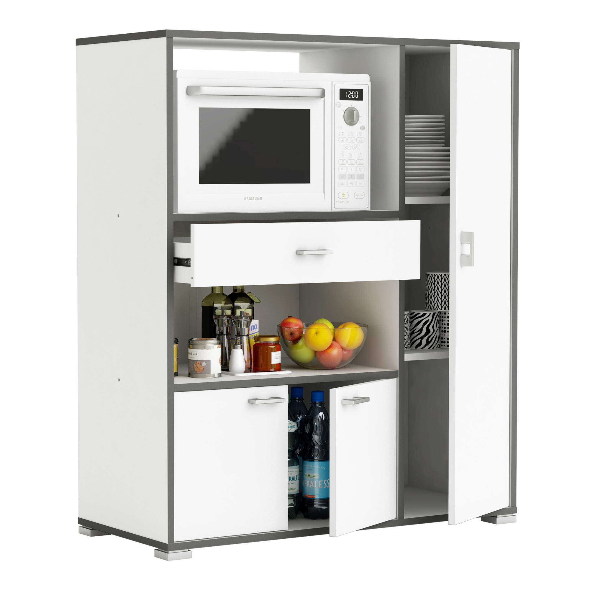 Voeg extra opbergruimte toe in je keuken met deze keukenkast ‘Buzz’. Dit compacte Magnetronkast is erg handig omdat het ruimte biedt voor een magnetron, ruimtes met verstelbare planken, een lade en een open nis. Bestek, servies, etenswaren en kleine elektrische apparaten kunnen slim worden opgeborgen! Zijn moderne uitstraling en mat witte kleur passen bij alle woonstijlen. Dankzij de melaminecoating maak je het gemakkelijk schoon.
