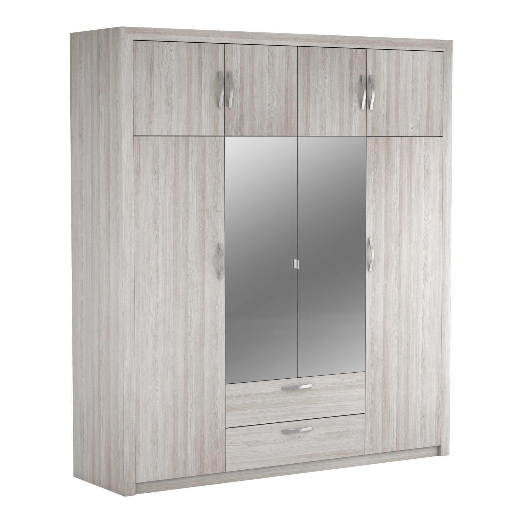 Kledingkast Pluton van 198 cm breed in Shannon eiken met spiegel