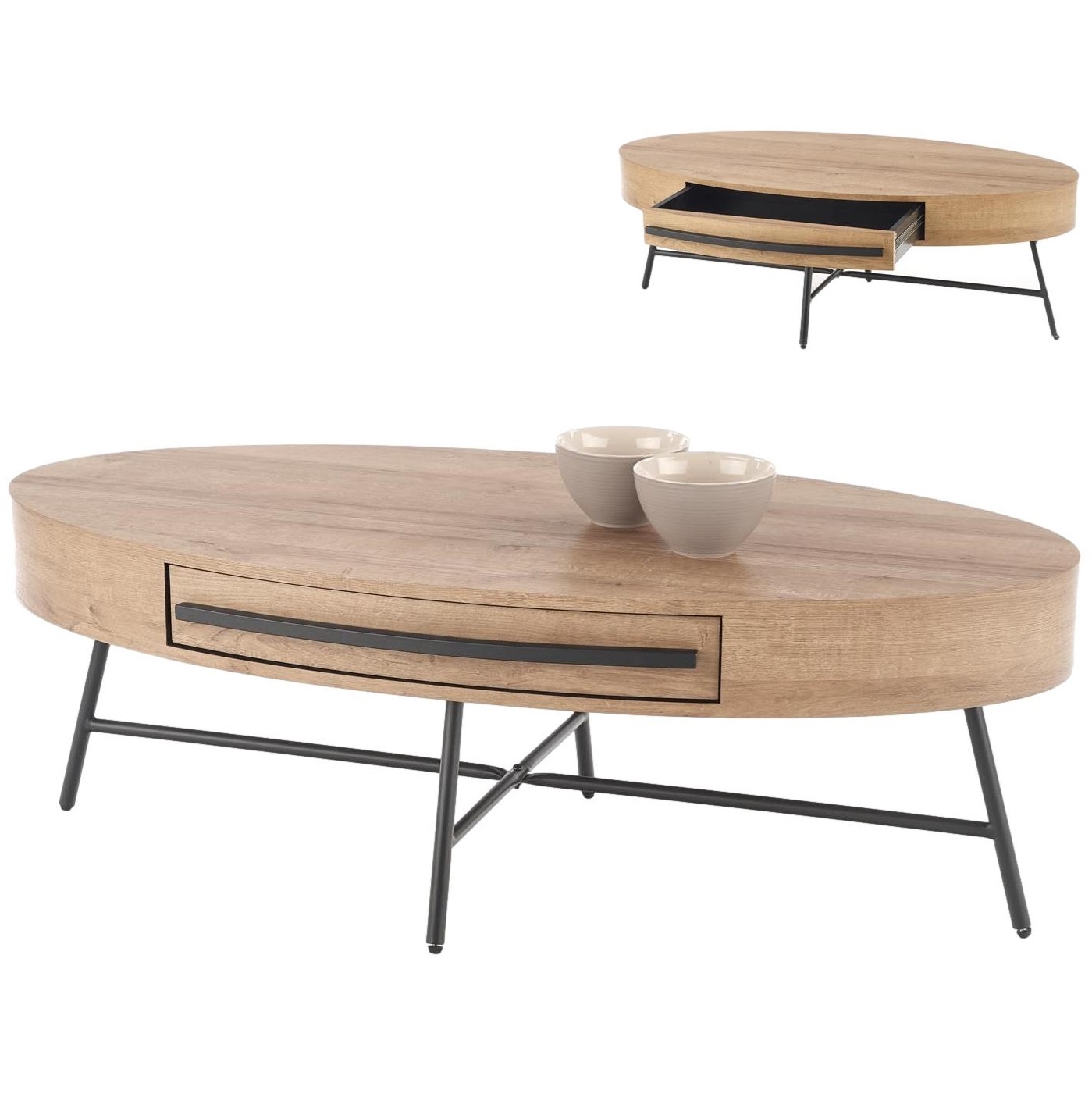 Ontdek de Carolina salontafel van 120×60 cm in een elegante bruine kleur. Deze tafel zal je verrassen met zijn stijlvolle uitvoering in loftstijl. De ovale vorm van het fineer MDF tafelblad in eiken goud en eiken kleur creëert een gezellige sfeer in de kamer. Het stevige stalen frame met poedercoating is ook zwart geverfd, waardoor deze salontafel nog aantrekkelijker wordt.