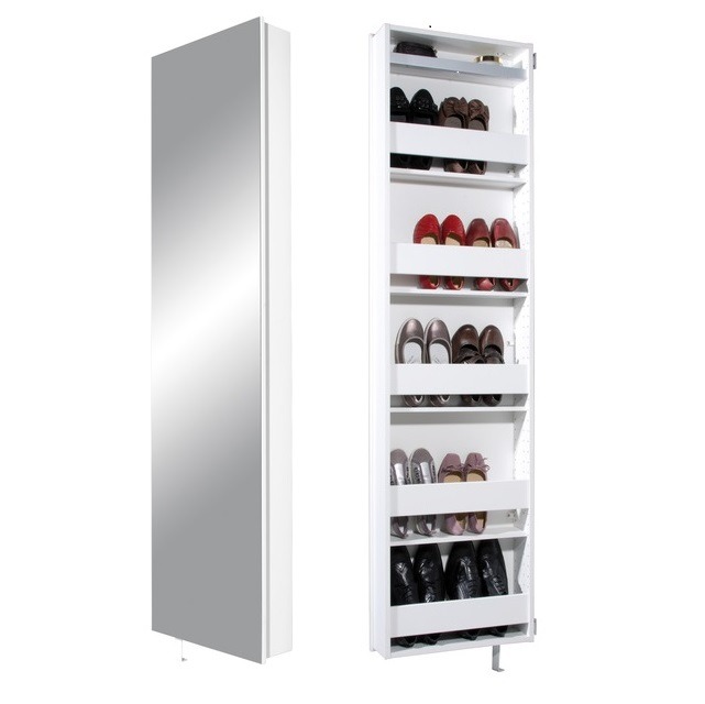 Roterend Schoenenkast Elda is een mooie schoenenkast met spiegeldeur, een zeer unieke eigentijdse kast met een vernieuwend uitstraling. Deze stijlvolle roterende kast is zeer multifunctioneel en bespaart u veel ruimte dankzij de geringe dikte van de kast. Zo creëert u extra ruimte in kleinere ruimtes. En dankzij de in hoogte verstelbare rekken, is het ook een draaikast die u in uw hal, badkamer of keuken kunt gebruiken voor uw schoenen, badkamer- en keuken artikelen. Het deur van het meubel is zowel Links en rechts monteerbaar. Uiteraard moeten de meubels ook passen bij de rest van uw interieur. U vindt in onze webshop een hele collectie design meubels, die zeer zeker ook in uw interieur perfect passen.