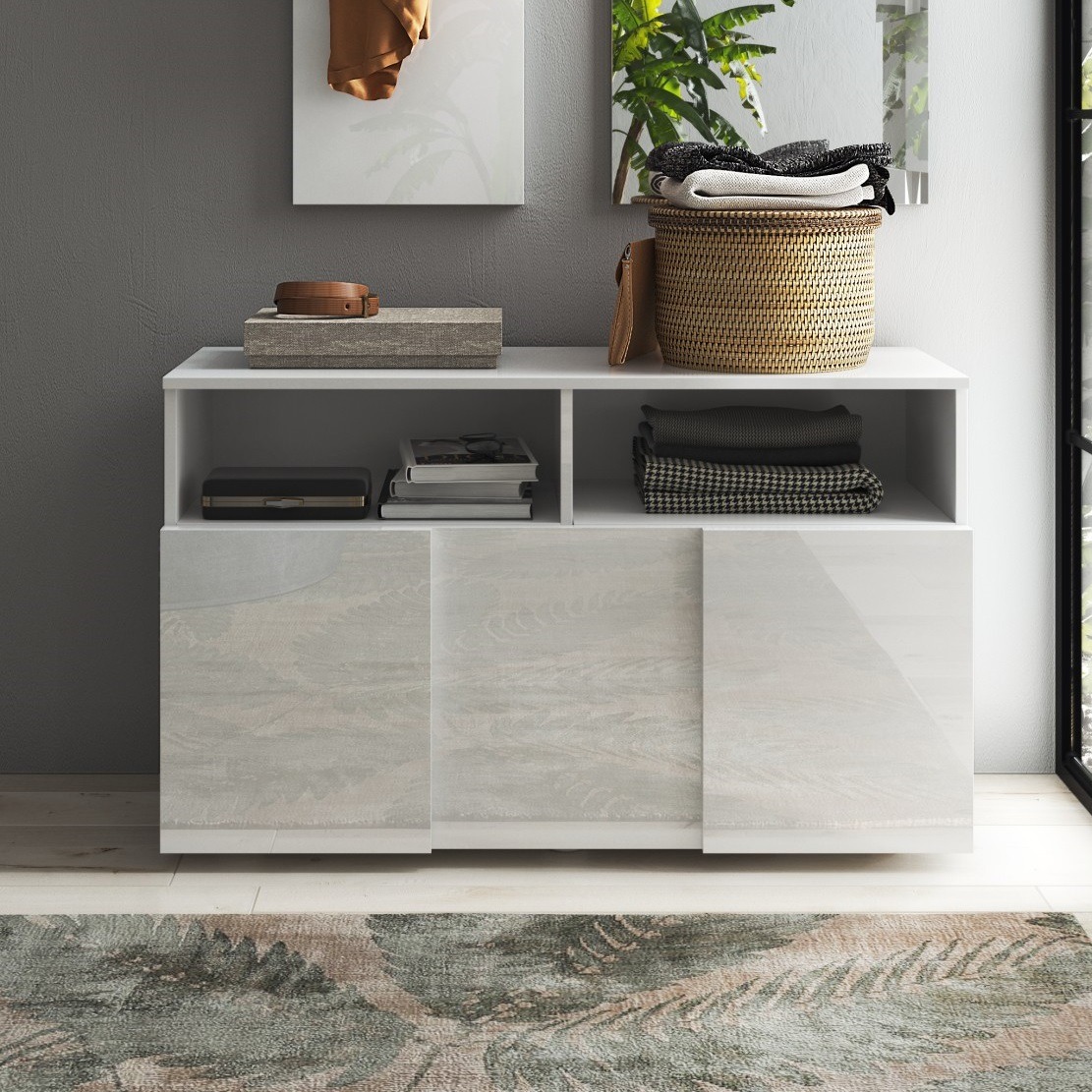 Schoenenbak Dama 91 cm breed hoogglans wit