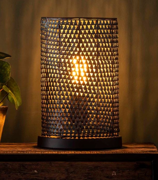 Deze “Armor” tafellamp is afgewerkt in een burned finish. Dit geeft een zwart/bruine kleur. De lamp is volledig handgemaakt en hierdoor is elke lamp uniek. De gaatjes maken deze lamp semi-transparant, waardoor het licht sfeervol door de ruimte wordt verdeeld. Deze lamp behoort tot de ‘Armor’ serie.