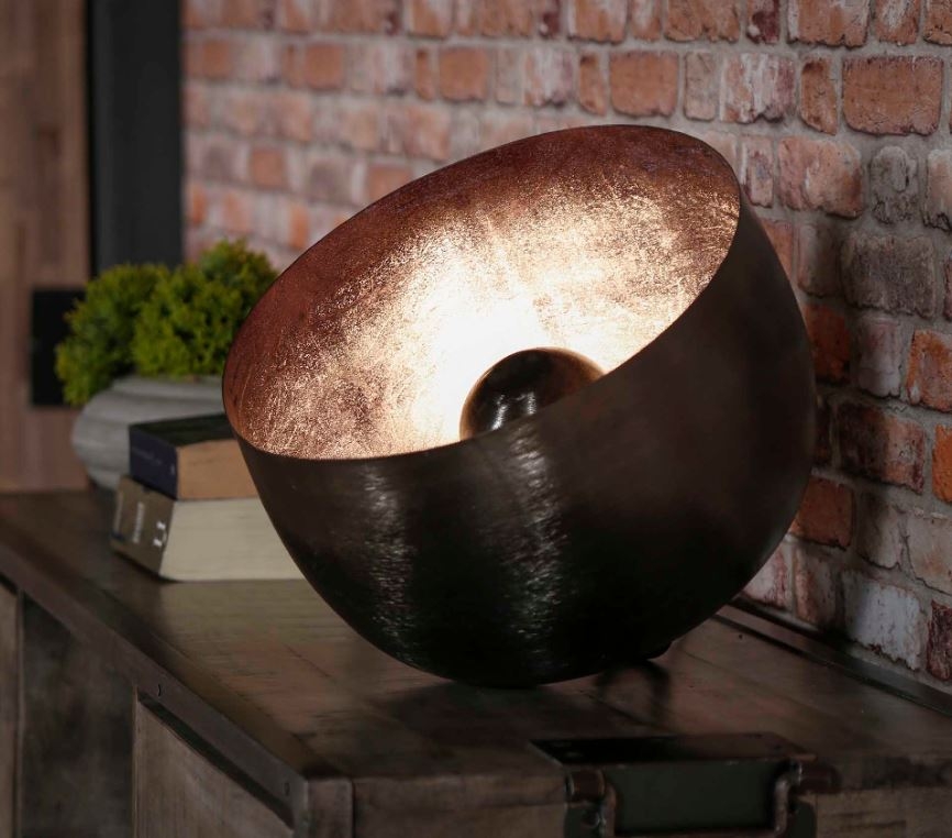 Deze tafellamp is afgewerkt in zwart nikkel, wat zorgt voor een trendy lamp met een vintage touch. Binnenin is gebruik gemaakt van een reflectorkap wat zorgt voor een mooie en versterkte uitstraling van het licht. Deze reflectorkap is naar eigen wens te gebruiken en is dan ook makkelijk te verwijderen. De lamp heeft geen pootjes, waardoor deze op zijn kant ligt. Deze lamp is ook uitgevoerd in twee grotere varianten.