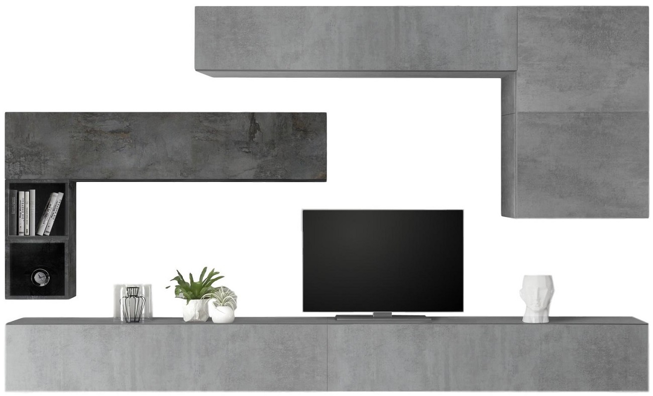 TV-wandmeubel Linux in grijs beton met oxid