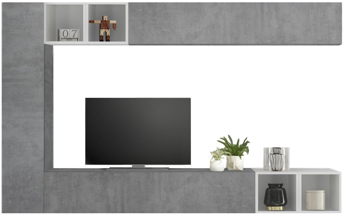TV-wandmeubel Sultan in hoogglans wit met grijs beton