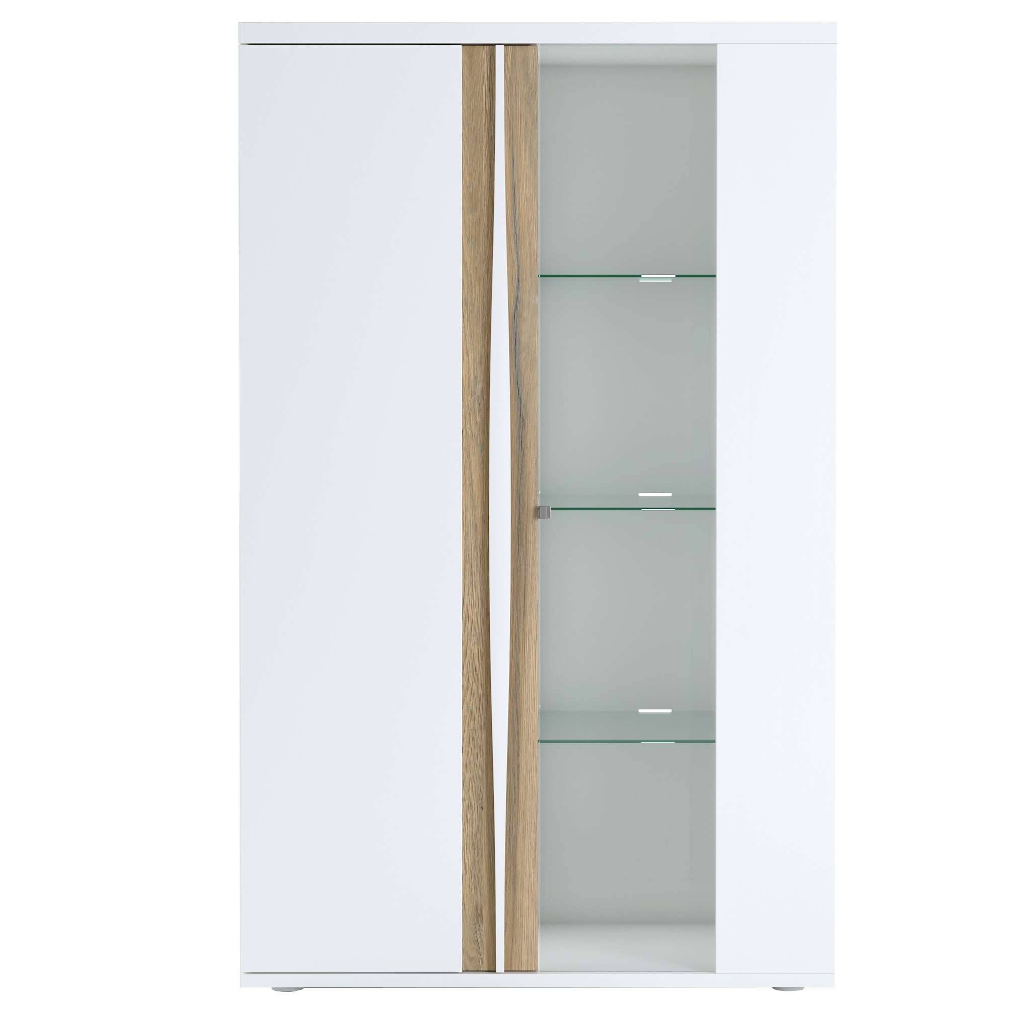 Vitrinekast Insta 180×110 cm – hoogglans wit met eiken