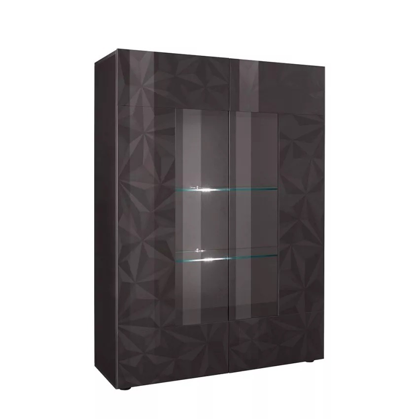 Vitrinekast Prisma 166 cm hoog in hoogglans antraciet