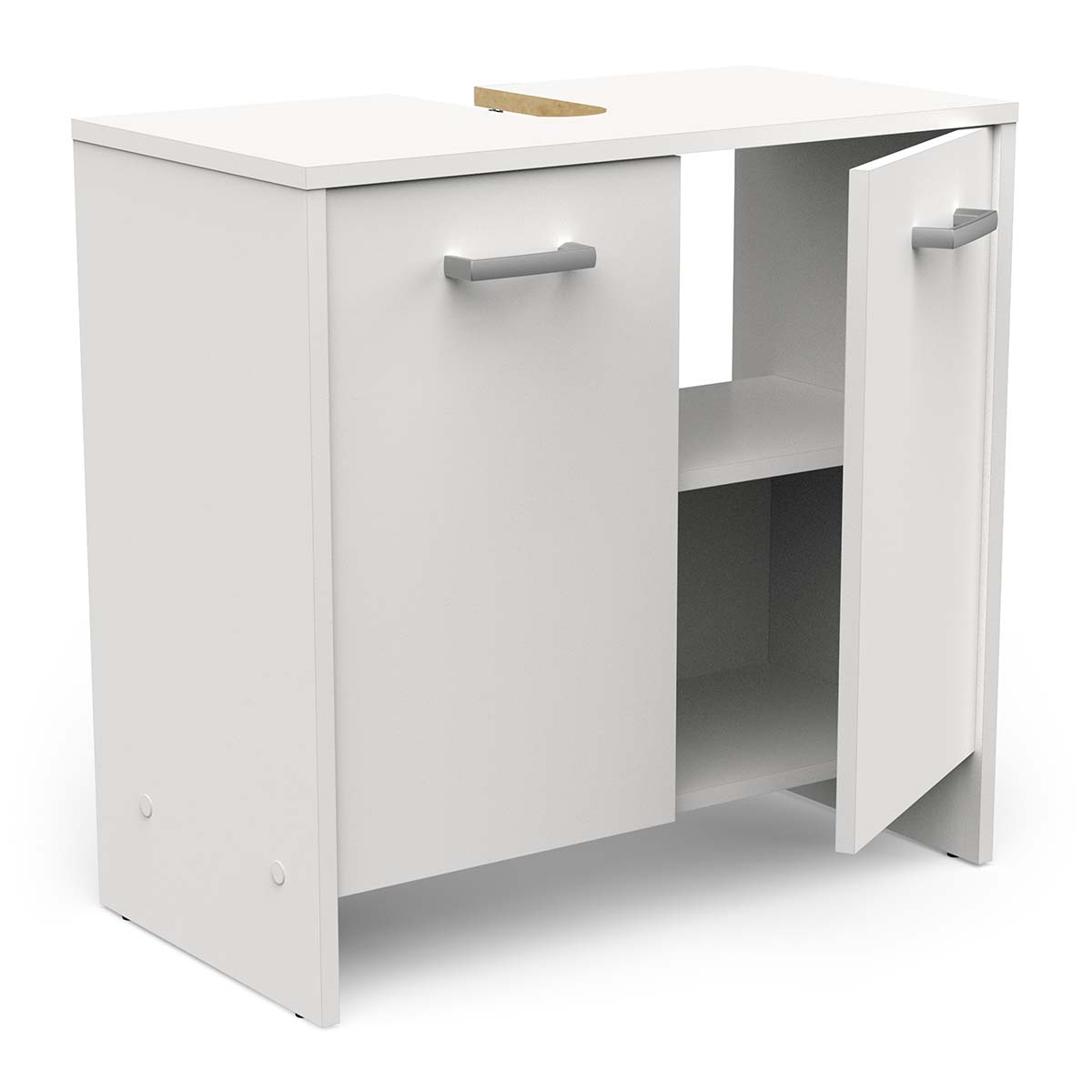 Deze Wastafelonderkast uit de serie charlie is uitgevoerd in de kleur wit. Deze kast heeft in het bovenblad inhamming voor de afvoer.
